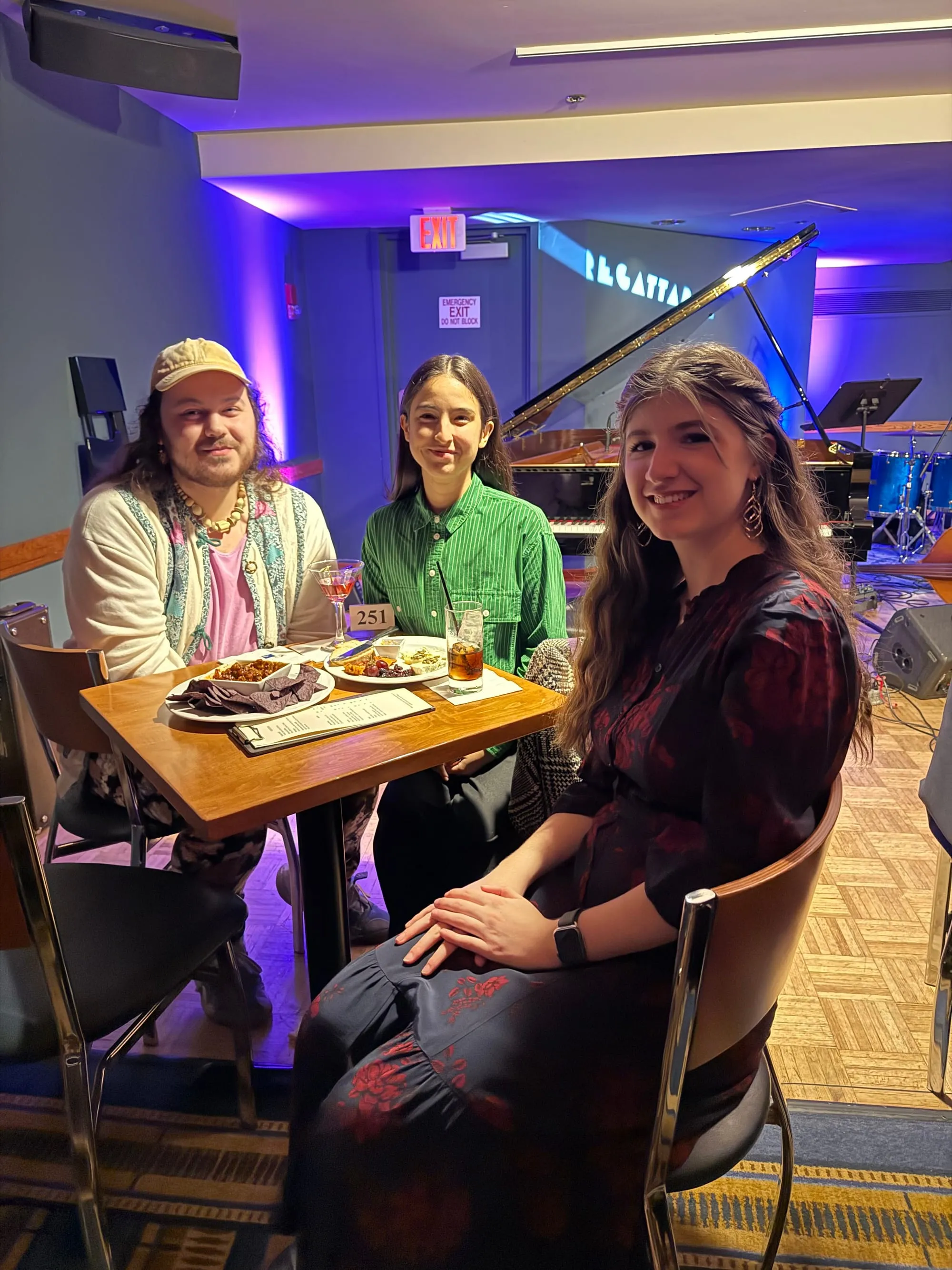 I arrived at the Regattabar fairly early, only to find the venue already close to full, with guests having arrived ahead of time to chat and order food in the restaurant-style setup. Before the concert, I had the chance to speak with two of these guests, who were also friends and collaborators of Devon’s, Fall Raye, and Simon Montalvo—their interview is included below.