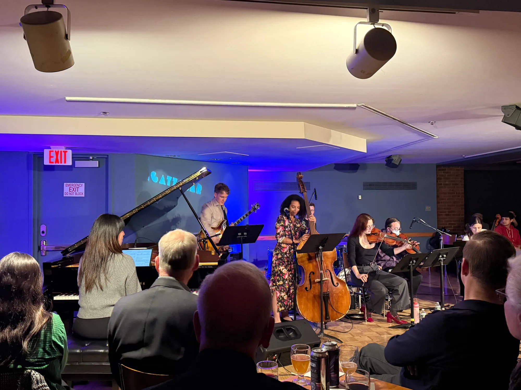 D: Yeah, exactly. And I really felt strongly that I wanted to do something that felt kind of chamber-inspired, that had strings. Which was kind of a big undertaking because of the arranging. Back then, it was two separate sets of music, and they had to be different. So it wasn't like you could play the same 8 songs for the next set because it was the same group of people. So, the show was quite long—it was about two hours of music to arrange for; I did an octet. So the same instrumentation we had here (at Regattabar 2025), except also with alto saxophone and flute (one musician playing both). It was a lot of work, but I was really proud of it because it felt like a really complete picture of where I felt I was artistically at the time. And I'm grateful also to be able to share it with a lot of these same people who got to come back for this fall 2025 version of the show. Regattabar has always been really good to me, asking me to play there multiple times and being down to accommodate these large bands.
